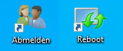 Die virtuelle Maschine kann von Ihnen nicht ausgeschaltet oder neu gestartet werden. Melden Sie Sich bitte ausschließlich vom Windows 10 System ab. Sie können dazu die vorbereitete Desktopverknüpfung nutzen.